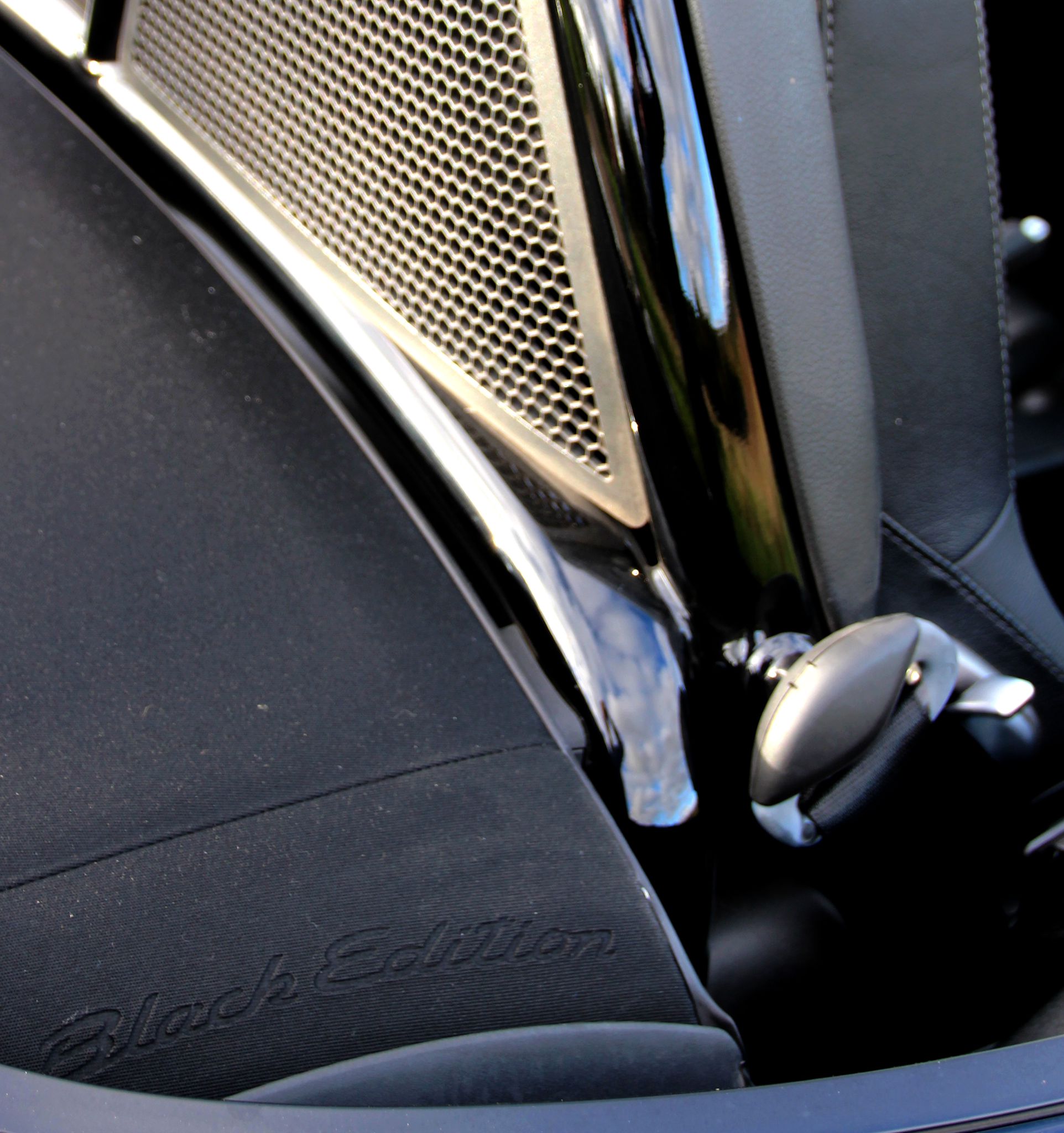L’habitacle, entièrement habillé de cuir noir, dégage une ambiance feutrée et sophistiquée, les finitions spécifiques à cette édition limitée ajoutent une dimension presque artisanale.